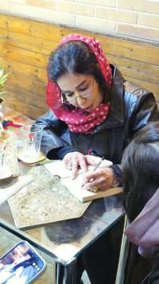 سپس سر‌کار خانم آیدا شیرینی همراه حاضران شدند و درباره تجربه یادگیری از خانم شیوا، جذابیت اشعار منتشر شده و نکات ظریف چند مورد از این اشعار صحبت کردند.