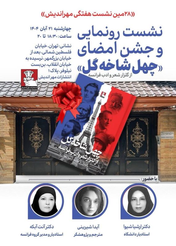 📚 بیست و هشتمین نشست هفتگی و مراسم رونمایی و جشن امضای کتاب “چهل شاخه گل” با ترجمه سرکار خانم دکتر ارشیا شیوا بیست و یکم آبان ماه در دفتر انتشارات مهراندیش برگزار شد.